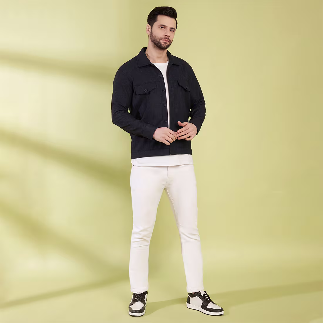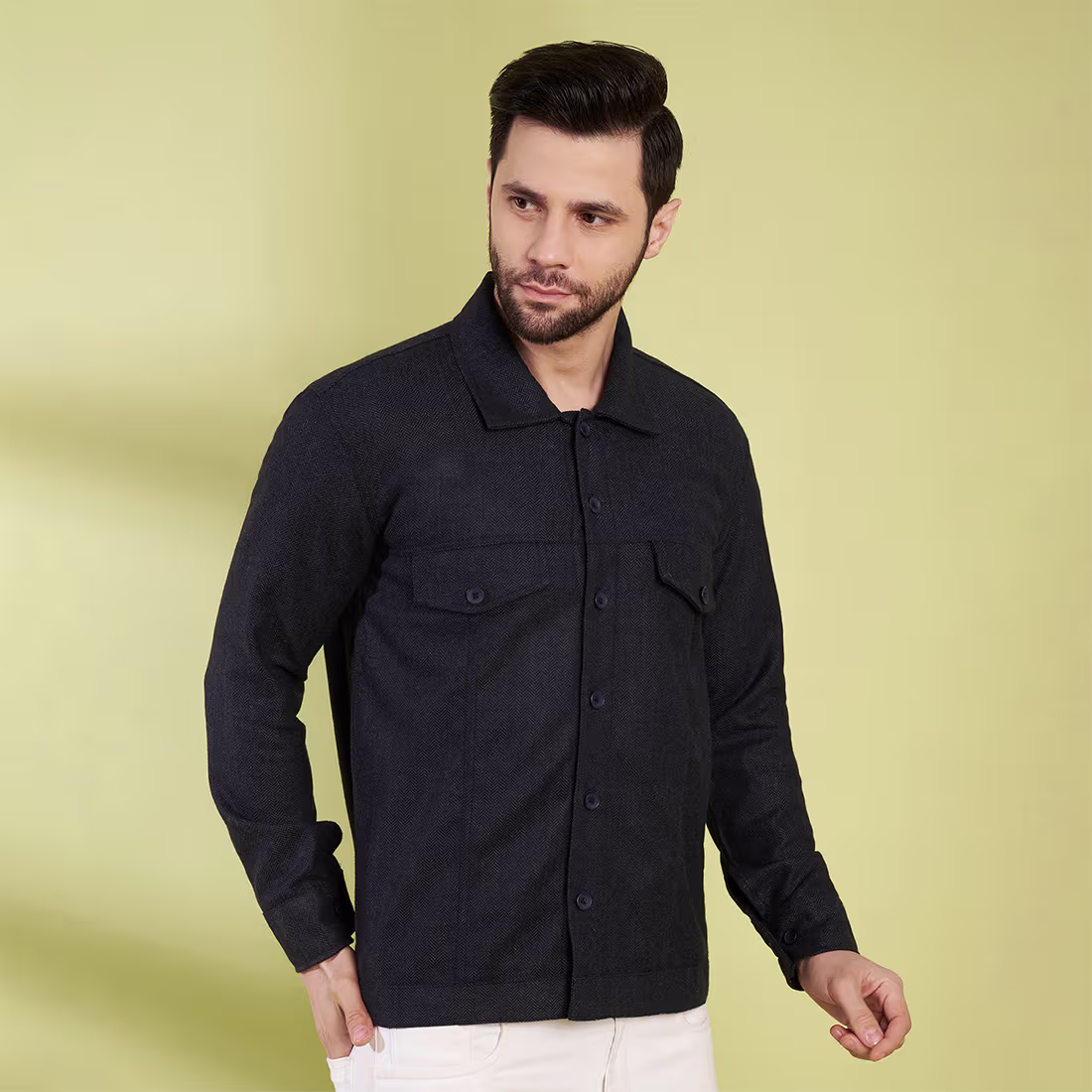 Whether you’re heading to a casual outing, a party, or layering up for everyday wear, this shacket delivers effortless charm. Its tailored fit and classic black tone make it easy to pair with jeans, chinos, or even formal trousers. A must-have for men who value both elegance and functionality during the colder months.