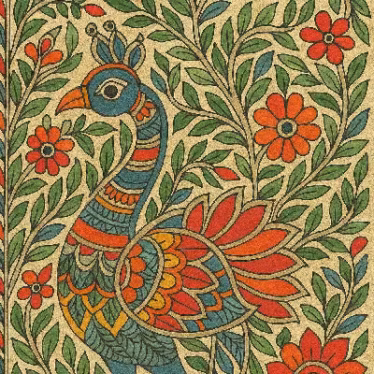 Madhubani is well-known for Madhubani is famous for its intricate and symmetrical designs and the bold utilization of colors.